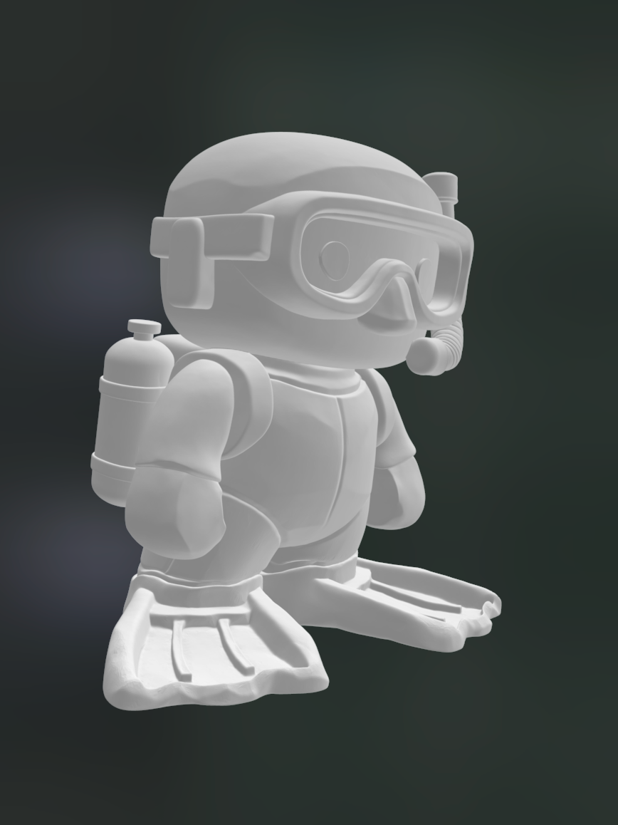Jeg tok vinnerbildet videre til Nano Banana 2 for å lage de andre "jobbene" som dykker, utforsker, etc. Ved å bruke Genie-bildet som referanse holdte jeg alle i samme 'butte tredukke stil'.